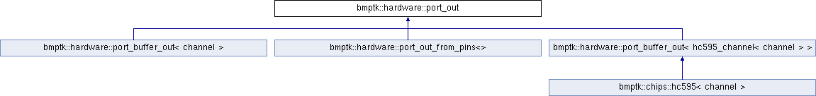 This class defines the interface of an output port, which consists (at least conceptually) of 0..32 output pins (each as defined by the pin_out interface).